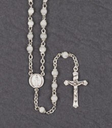 7mm ROUND MOTHER OF PEARL STERLING SILVER CENTER & CRUCIFIX ROSARY